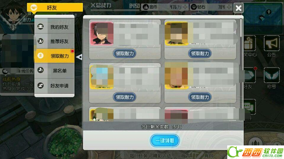 12、好友选项的领取耐力15点耐力