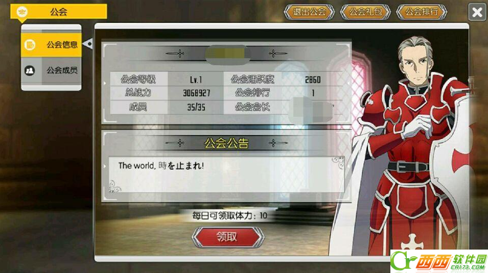 13、公会每日领取10体力