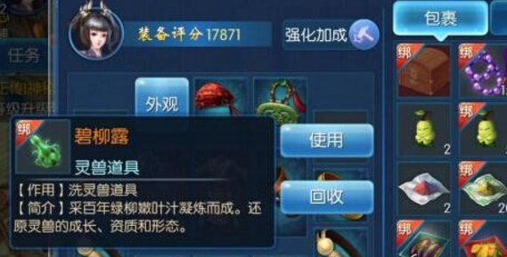 等级低的时候尽量攒碧柳露,毕竟这时候灵兽的存在感几乎没有,甚至是有没有宝宝都无所谓,这时候去培养宝宝就很浪费。