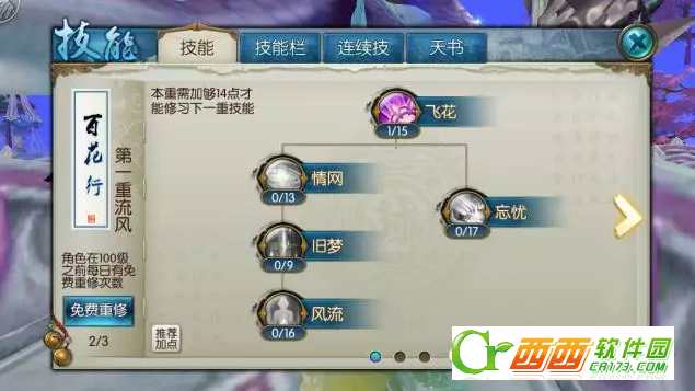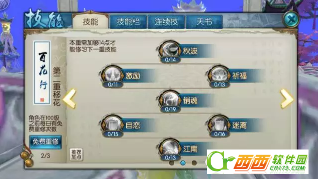 诛仙手游合欢有三重技能,第一重流风、第二重移花、第三重望月。这三重技能分别怎么加点好,下面就和西西一起来看看诛仙手游合欢技能加点攻略,希望能帮到大家。