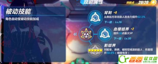 被动则是增加最大sp和背刺伤害,第三栏基本上都包括了也就是说你第一个分身消失后突到后面背刺能对敌人造成巨大化的伤害,而且分身也能打出,基本上就算被克也可以打出足够的伤害