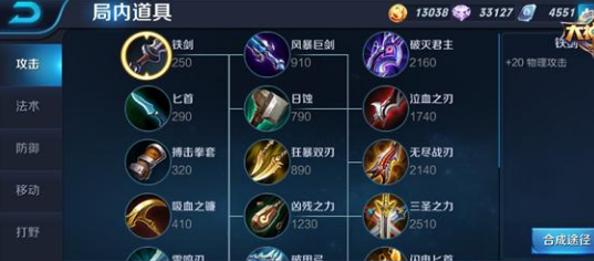 按照上述虞姬的定位在出门装选择铁剑,可增加攻击力,因虞姬的远攻能力较为优秀,无论是自己单线作战还是选择和友军共战一路,通过远攻技能消耗敌方血量,或者使用天赋技能对敌方造成高额伤害并减速敌方,铁剑都可以为其附加更好的输出效果,让虞姬的消耗能力更突出。