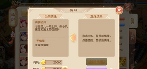 梦幻诛仙特色玩法之一,根据诛仙小说故事剧情的起伏跌宕,特地设置了仙侣情缘,玩家可以通过消耗金币来进行洗练情缘,直到玩家对仙侣情缘满意为止。