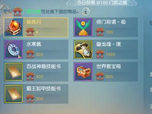天下手游中职业后期技能需要在师门声望兑换中用师门声望和50个技能书残页进行兑换。