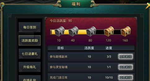 参与活跃度界面中的任务、副本、活动等可以获得相对的活跃度。