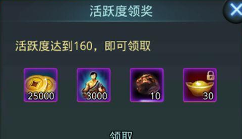 参与游戏中各种任务、副本、活动等获得的活跃度,可以用于领取活跃度宝箱,活跃度越高,宝箱奖励也越高。