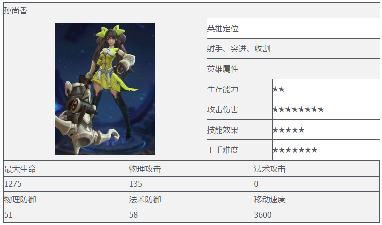 王者荣耀孙尚香技能属性介绍