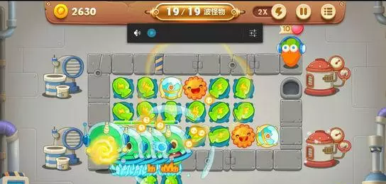 4.最后要注意的是,千万别再打障碍物时用所有的炮台去打,怪物很快就会啃食阿波的。