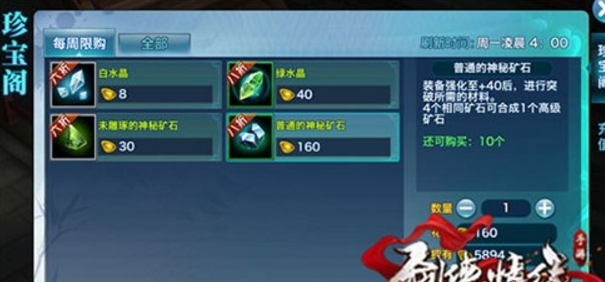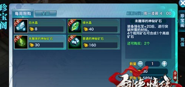 装备从20级到40级的强化需要绿水晶,当装备强化到40级后,又要实施突破,这时用到的材料叫“普通的神秘矿石”。此矿石可由4个“未雕琢的神秘矿石”合成,当然也可以在商城直接购买。