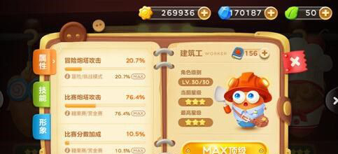 阿波赤裸裸的来了,人家发誓要做“清凉魅男子”。能力不是很高,技能也是零,但是它能对炮塔们能提供超强的攻击辅助,最高为18%。在最初的奋斗岁月里,能让炮塔兄弟们信心和能力倍增,让萌怪们头痛不已。为了保护萝卜,也是拼了,拼的不是技能而是真实的能力。对了,这个角色还能完成积分和金币的加成,相当强悍哦。