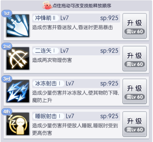 冲锋箭→二连矢→冰冻射击→睡眠射击