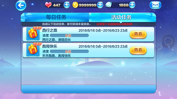 活动内容:第1天,用“齐天大圣”在经典模式中单局跑888米,可得积分*58