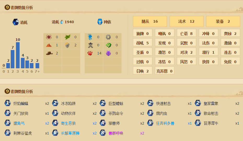 以上就是炉石传说美服前十猎人卡组推荐,炉石传说新版本犀牛中速猎卡组全面攻略,希望大家喜欢。