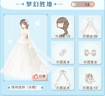 暖暖环游世界的最新的婚纱活动开启了,很多的暖粉都纷纷投入到了与梦幻大使的对战当中了,当然许愿星是越多越好了,不过总共需要多少的许愿星,才能够兑换完本期的两套婚纱的套装呢,西西在这里为大家整理了总共所需要的许愿星的数量,一起来详细的看一看吧。