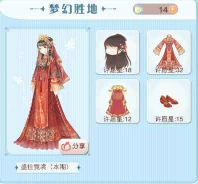 P.S.大家都知道要赢梦幻大使3次才能够兑换一个许愿星,所以两套需要154个许愿星,也就是说要赢梦幻大使462次呢,这是个艰巨的任务,暖粉们加油吧!