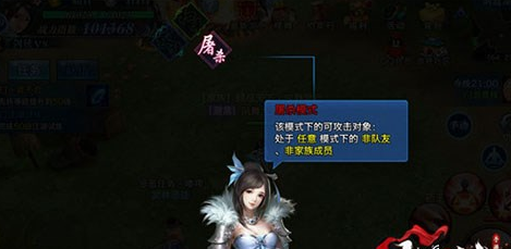没有恩怨就没有江湖,爱恨情仇的武侠世界,杀戮在所能免。屠杀模式便是一种非对称模式下的PK方式,且大多针对的是和平模式的玩家。一是屠杀模式下可攻击非本队伍、非同家族且不在安全区的任何玩家。二是屠杀和平模式的玩家,杀死对方后会增加1点恶名值。三是有恶名值的玩家被杀后,恶名值会降低1点,但死亡时会掉经验,且恶名值越高掉的经验越多。