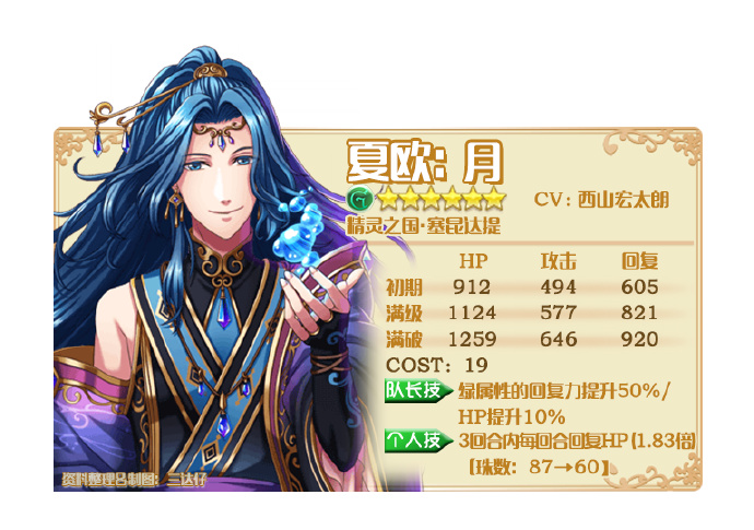 初始状态的夏鸥王子也是非常赞的,cv是西川宏太郎,非常温柔有磁性。公主们有得到夏鸥王子卡么?