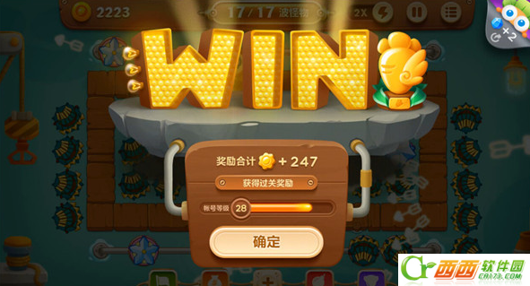 2、等隐藏炮塔出来之后,局势基本就稳了。接下来的就是不断打怪、打障碍赚钱建塔了。建塔时注意多建冰冻星,确保怪物全程受冻。