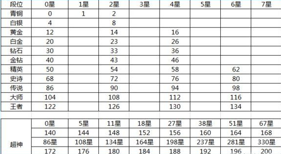 十二段位:青铜 - 白银 - 黄金 - 白金 - 钻石 - 金钻 - 精英 - 史诗 - 传说 - 大师 - 王者 - 超神