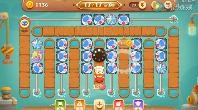 积攒金币后,继续种雷达清道具,中途可种上冰冻星减速