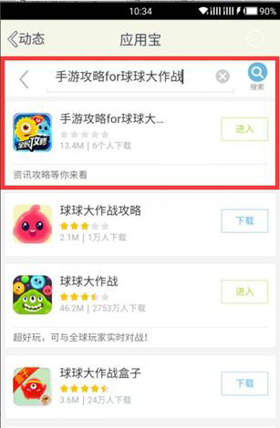 用户开大应用宝,搜索手游攻略for球球大作战,点击下载即可。