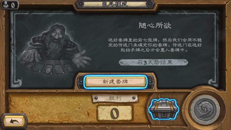 玩家需要选好套牌里的前七张牌,然后其他的牌会由传送门来填充至30张!传送门在你选好起手牌之后才会置入你的套牌。这个乱斗和之前的“遍地传送门”大同小异,唯一的就是要自己选择随机的卡牌!