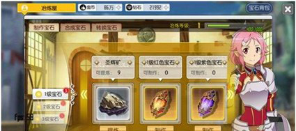 在冶炼屋,小伙伴们可以将在野外获得的矿石,加工成能够镶嵌在装备上提升装备属性的宝石。冶炼等级可以通过不断的分解矿石和制作宝石来提升,等级越高,能够制作的宝石等级也越高。并且呢,3个相同颜色的低等级矿石,是可以合成为更高一级矿石的,两个不同颜色的宝石,也是可以转换为指定颜色的宝石呢~~