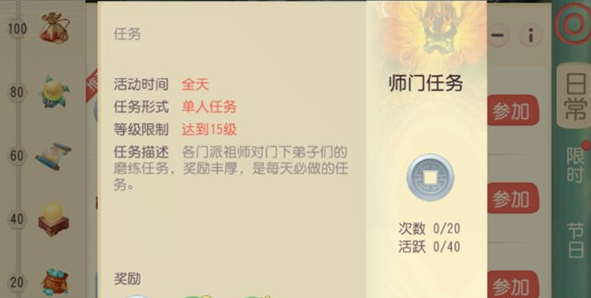 任务一 师门 活跃值40点