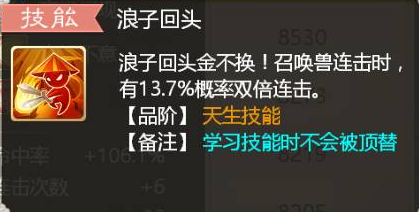 如果我们在战斗中能够让对方男鬼一回合不出手,那基本胜负已定,鉴于现在大多队友依靠男鬼来进行续航,只要男鬼被控,队友次回合的能力就大打折扣。因此本期推荐的金不换就是作为一回合的强硬控制来使用,现在男鬼的高抗性让很多二阶男人都头疼,单混烟花是常事,但是召唤兽技能的混乱和封印是无视抗性的,只要触发了本回合一定被控制。战斗时几率就是左右战局的重要因素之一,混乱+封印技能搭配,只要连击的话还是有非常大的几率触发的。加上浪子回头的特性,最高连击次数可达20次!让金不换在单回合控制上越走越远。