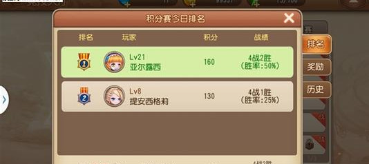 4.一切准备就绪就可以开始游戏了,积分赛无论输赢都会获得积分,你的积分在积分榜上每天都会重新计算。点击积分榜就看到自己当日的积分,排名和战绩。