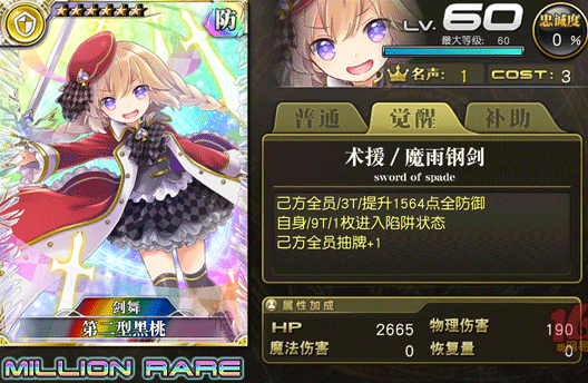 3C3回合全防御提升1564,但自身1枚卡牌陷阱9回合(5000伤害)。
