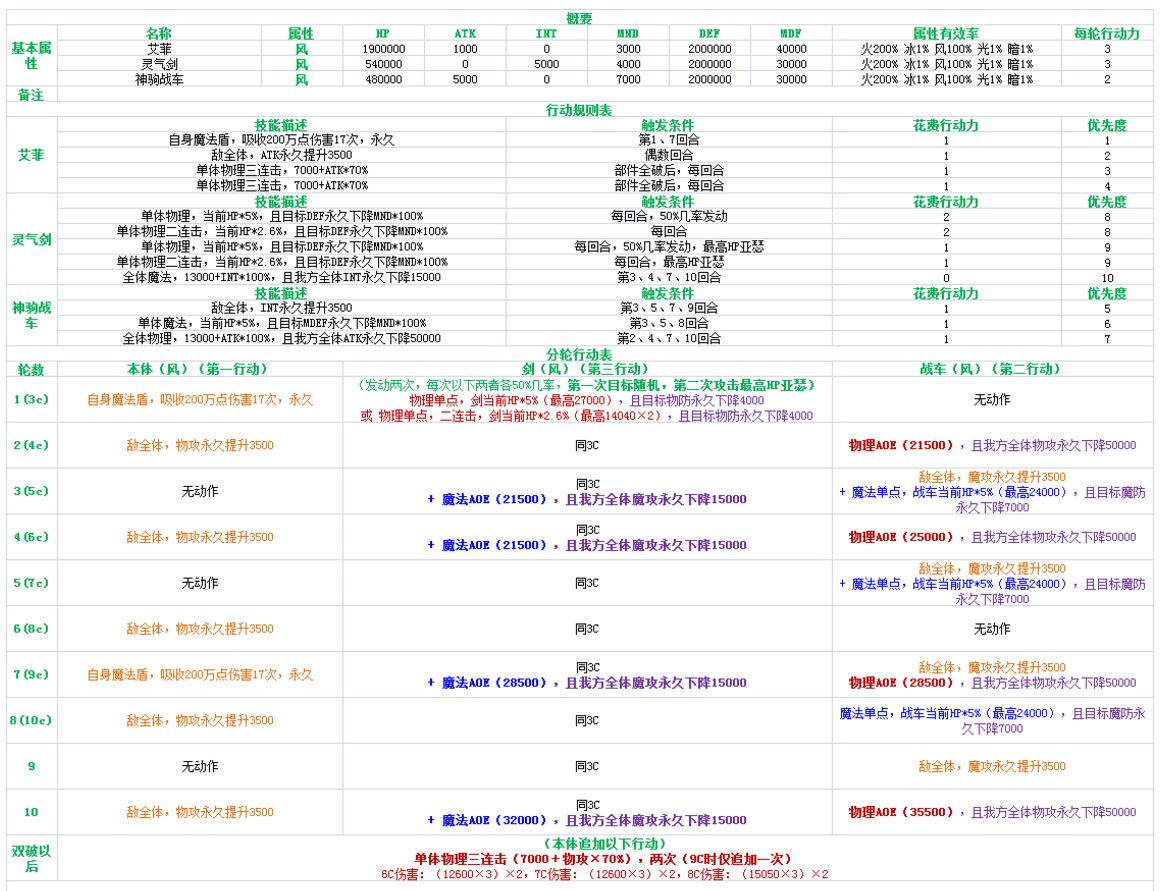 ③:战车在4、6C的物理AOE可以被弱化(4C时物攻8500,6C时物攻12000),其余的魔法单点弱化无效(防御有效)。