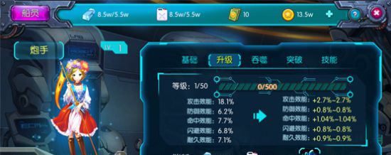 《舰娘传奇》无论是军舰还是船员,升级都有属性区间,品质越高可提升的属性值越多。普通升级只需消耗一定量的资源即可,但属性成长较为随机,对于稀有船员来说,普通升级会损失很多属性啊有木有!那怎样升级才能最厉害?