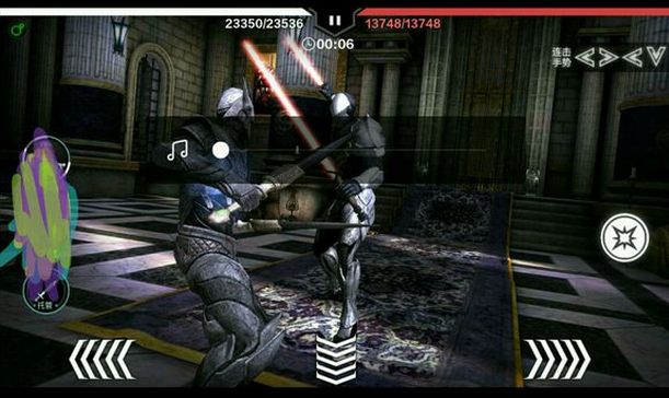 三阶段连招:我在这里失败了很多次,~~羞羞~~看来在无尽三里杀赖斯太少了。三阶段连招,也有明显的后退,然后是一个正面中踢,可以左闪;之后是旋转两圈720度的旋风腿,直接长按下蹲即可闪避掉;最后是华丽的一个舞姿,注意看还有个小的腿部蓄力,之后像甩红绸子似的挥舞着两把太阳剑,从腰部横扫过来,这时候长按下蹲即可破击。
