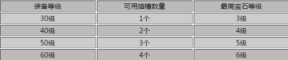 每件装备至多拥有4个插孔,有的插孔处于封印状态,需要装备等级提升后解开宝石封印孔位方可镶嵌宝石。