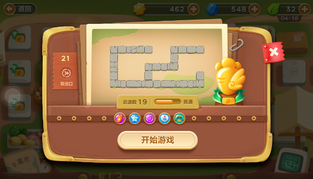 保卫萝卜3集市21关金萝卜道具全清通关攻略: