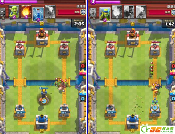 野猪加哥布林组合相信很多玩家都不陌生,哥布林攻击高移速快,开场在家放一个当移动到河道处时,放出野猪基本可以先手推掉对方公主塔部分血量。如果对面使用建筑类卡牌作为防守也可以用电击术打断攻击,保护野猪。