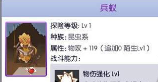 其实作为一个物理系的职业,不管是伤害还是防御,主要加的都是物理属性。所以选择物理型技能加成的宠物是非常重要的。而游戏中,物伤强化的紫色宠物就只有兵蚁了,玩家们通过扭蛋或者关卡获取兵蚁,都可以作为一个很好的伙伴来进行培养哦。