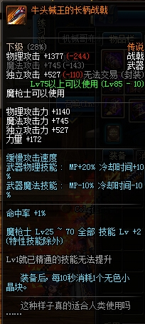 实际上来并不算太推荐的武器,因为这把武器只加技能,而且只有两级,还只加25~70
