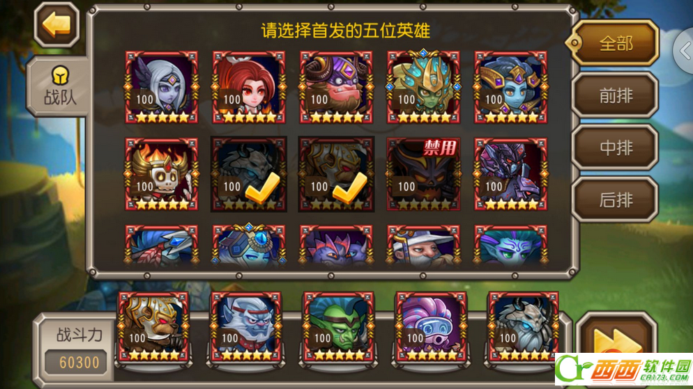 首先是阵容的选择,因为进攻尸王的小兵有很多,所以在选择阵容中,优先选择群攻且带吸血功能的,而首发阵容当中,更是如此,所以我的首发阵容是