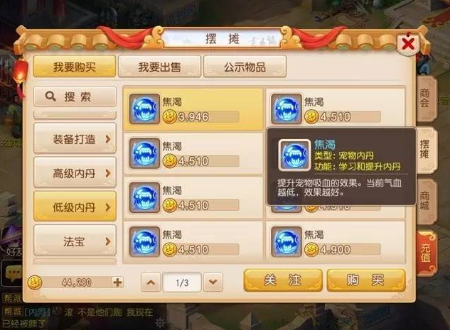 焦渴虽然只是一个低级内丹,但它的效果却十分不错。当你的宝宝拥有吸血/高级吸血技能攻击目标时,所吸取的血量会得到提升,而自身的血量越低效果越好。所以如果你的宝宝拥有吸血/高级吸血技能,可以为其打上一颗焦渴内丹。