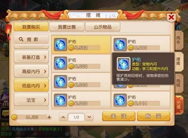 护佑技能虽然不是直接增加宠物的属性,更不提升技能的效果,但它对于血宠也十分受用。在PVP中为了防止对方的点杀我们往往会让宠物来保护目标单位,但宠物也会因此受到很大的伤害,而当你的宠物拥有了护佑内丹后,保护目标时所承受到的伤害将减少,间接地提高了生存能力。