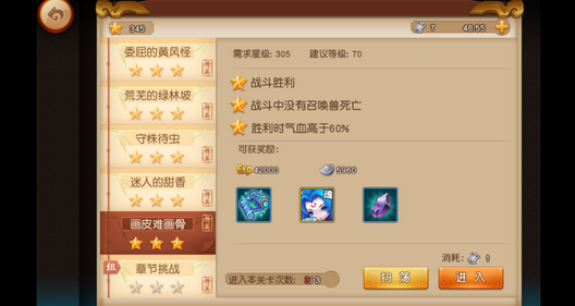 然后在耗血的过程中,由于助战不会躲技能,估计早就死了,不用担心,我们自己继续耗血。但是要记住,把BOSS的血耗到3管以下的时候,BOSS会召唤出3个小蜘蛛,这个时候一定要注意把诗诗收回来, 因为3个小蜘蛛伤害特别高,诗诗会被打死的(宝宝死了就拿不到3星评价了)。