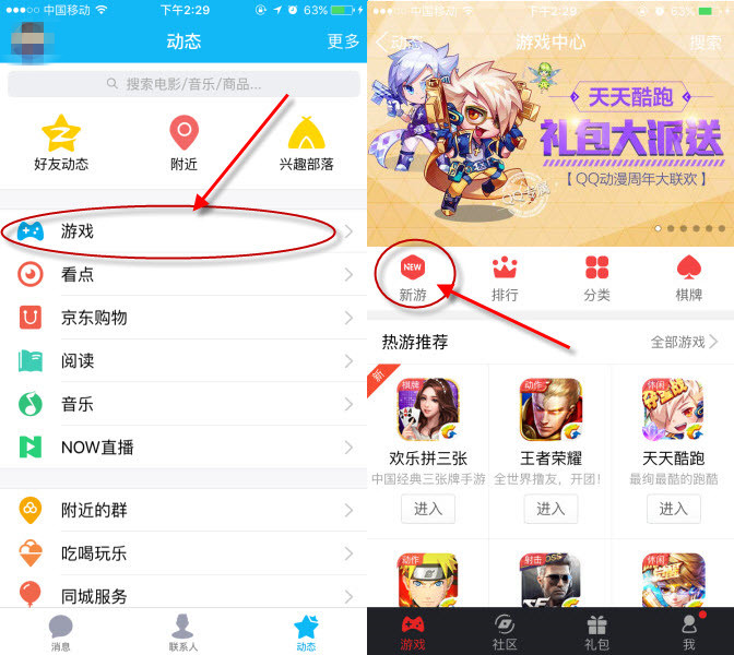 点击进入,里边有腾讯游戏的一些动态资讯,点击下图所示的【新游】