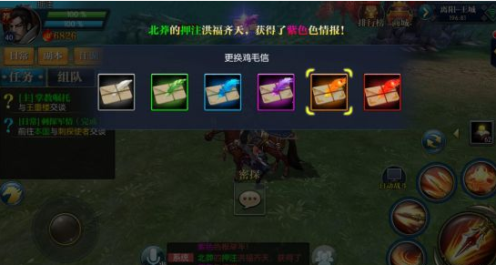 找到潜伏在敌国的密探之后,向他获取情报,如果获取到的不是最高品质的鸡毛信,可以选择更换,直到最高品质为止,品质越高,获得的奖励也越高。