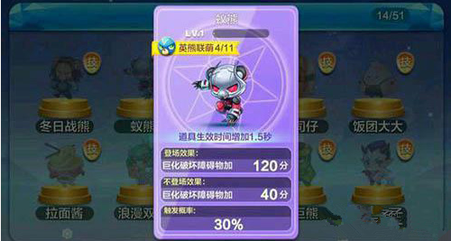 蚁熊的登场效果是巨化破坏障碍物加3500分