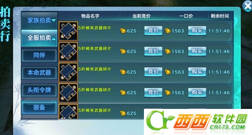 武器来源主要有两种途径,一是家族兵甲坊打造,二是参加历代名将后,有概率以武器碎片的形式获取。以5阶武器为例,4级以上兵甲坊每消耗10200家族贡献便可打造一次,出现“稀有”的概率是5%。历代名将后武器碎片拍卖的起始价是625元宝,10张碎片可合成一件成品。
