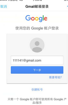 然后进入到登录界面随便输入一个gmail账号如图。