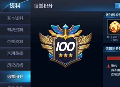 2、而那些积分扣到被禁赛的玩家,想要重新的比赛的,需要每周至少完成一局多人对战,并且当天没有被扣除信誉积分,信誉积分槽的分数减少5分,降到最低限度的分数就可以再次比赛。