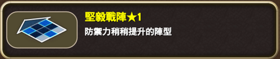 坚毅战阵:抵抗打属的最佳战阵,对远、突抗性较低,建议对抗打属魔神时再拿出来用。